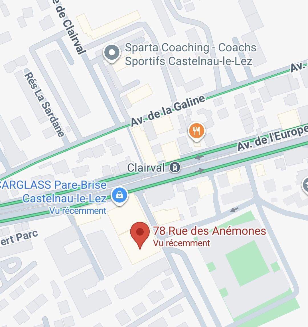 La rue des anémones est la rue perpendiculaire à l'avenue de l'Europe au niveau de l'arrêt de TRAM Clairval. Pour se garer il y a des places "disque bleu" : deux heures gratuites devant la résidence. Sinon au bout de la rue des anémones il y a un grand parking gratuit non limité en termes de temps.La résidence le Square 2 est collée à un grand hangar et se situe en face du cabinet de kinésithérapie LUNA.